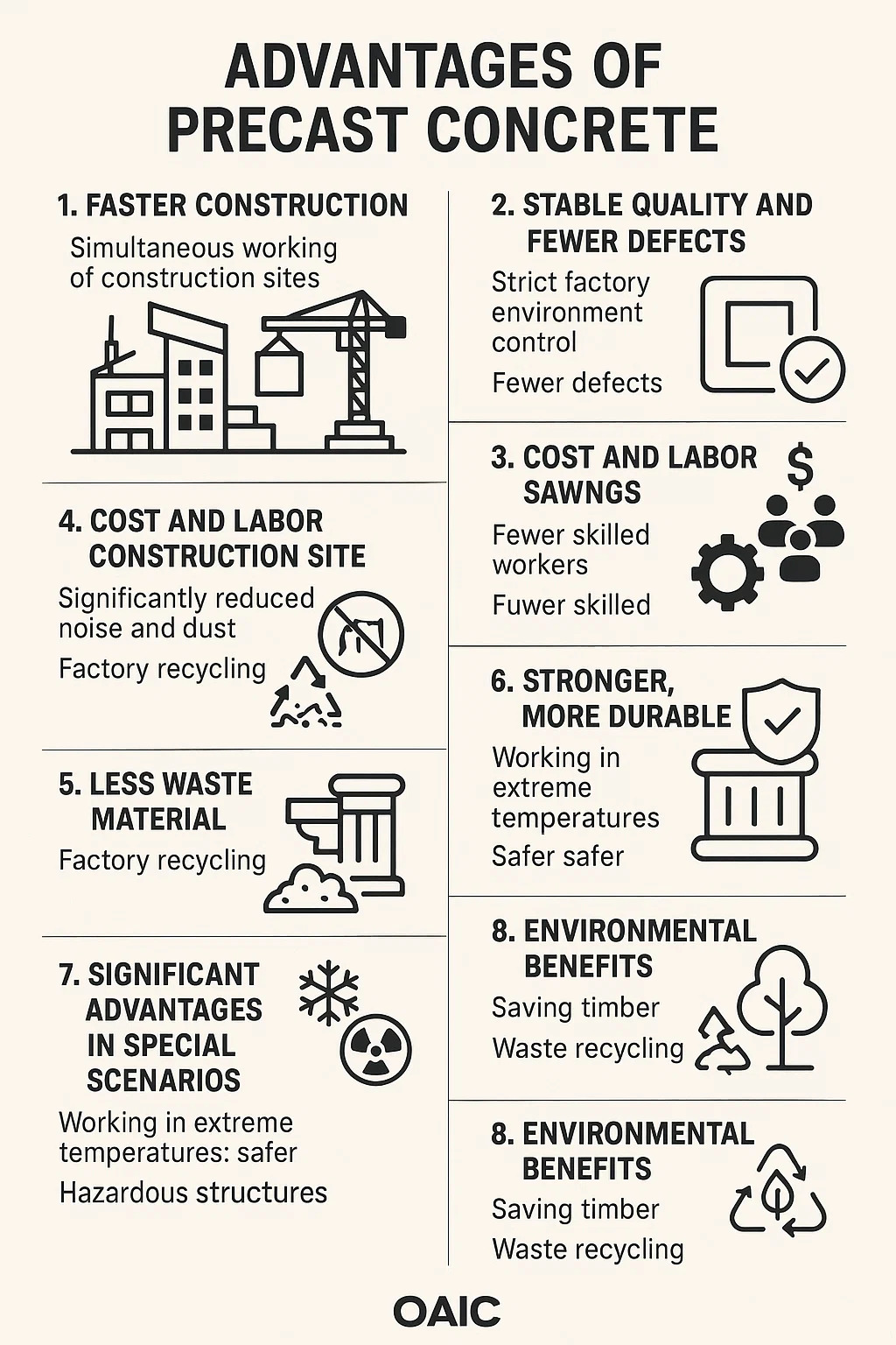 এখানে প্রিকাস্ট কংক্রিটের মূল সুবিধা রয়েছে: