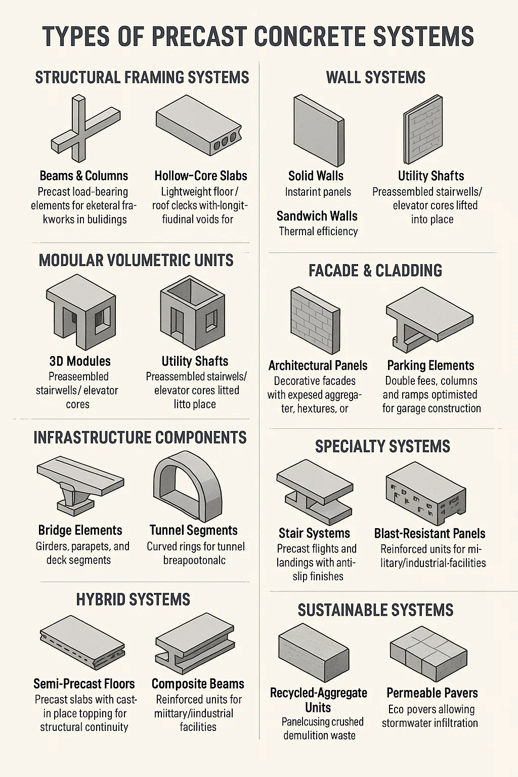 বিমস এবং কলামগুলি: বিল্ডিং/সেতুগুলিতে কঙ্কাল ফ্রেমওয়ার্কগুলির জন্য প্রাকস্টাস্ট লোড-ভারবহন উপাদানগুলি।