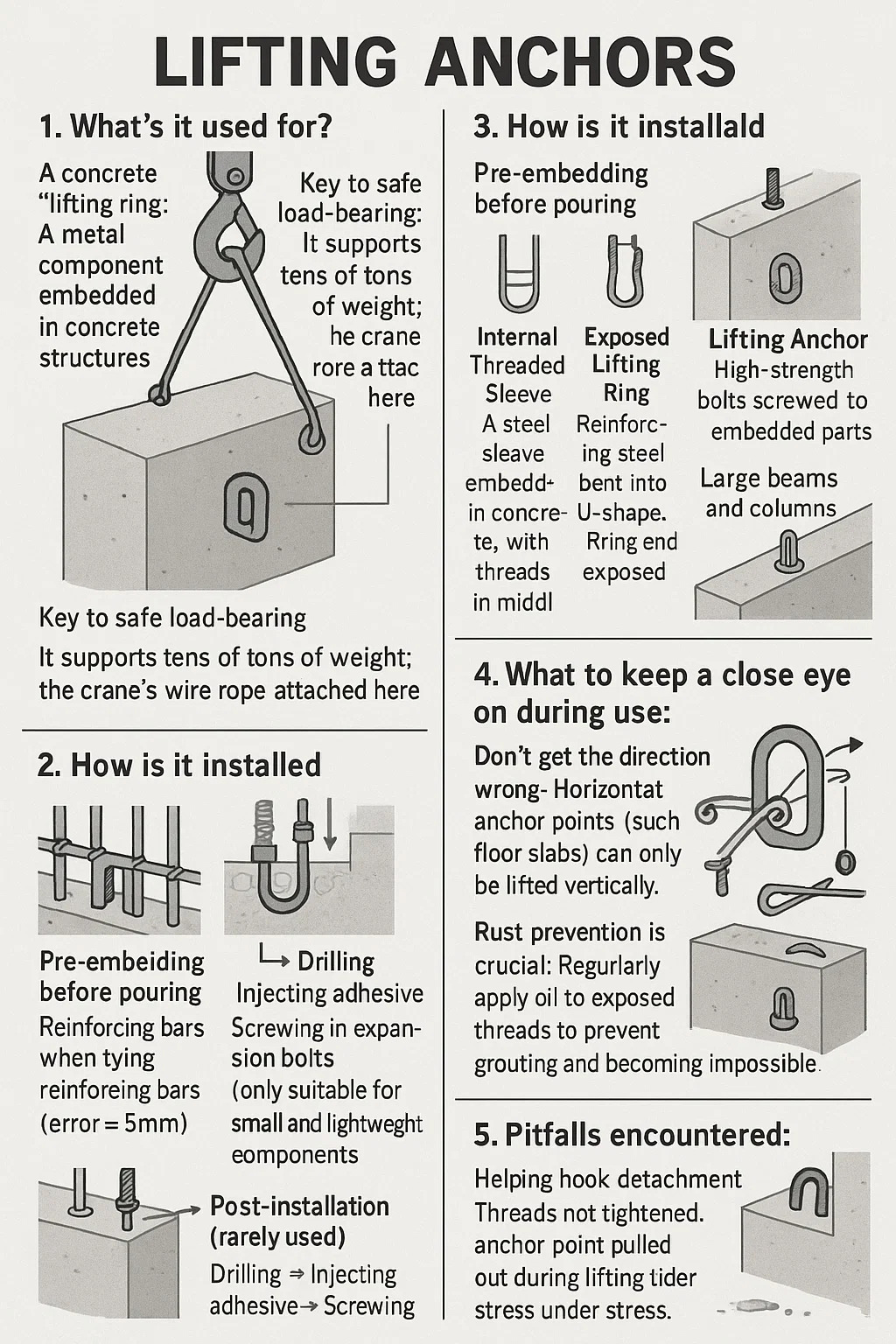 এখানে একটি ব্যাখ্যা নোঙ্গর উত্তোলন , সাধারণ নির্মাণ সাইটের পদে বিভক্ত: