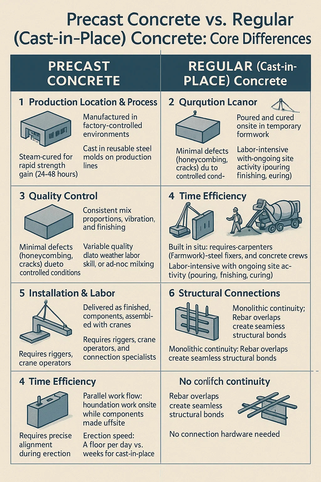 প্রিসাস্ট কংক্রিট বনাম নিয়মিত (কাস্ট-ইন-প্লেস) কংক্রিট: মূল পার্থক্য
