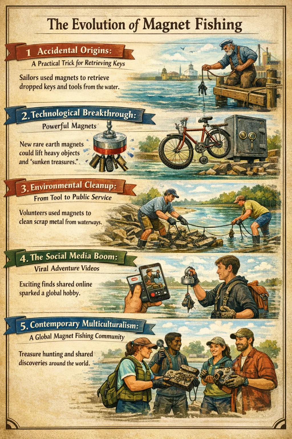 গ্লোবাল কমিউনিটি: আজকাল, সারা বিশ্বে এমন নিবেদিত সম্প্রদায় রয়েছে যেখানে লোকেরা তাদের সরঞ্জামের টিপস এবং সর্বশেষ আবিষ্কারগুলি ভাগ করে নেয়, একটি কুলুঙ্গি টুল থেকে চুম্বক মাছ ধরাকে একটি লিঙ্কে রূপান্তরিত করে যা মানুষকে প্রকৃতি এবং ইতিহাসের সাথে সংযুক্ত করে৷